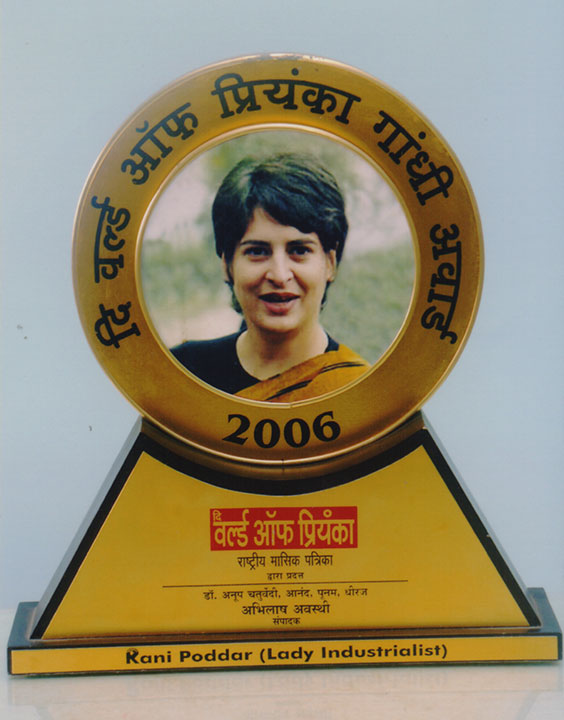 - Received “World of Priyanka Award” for Lady Industrialist Lifetime Achievement Award received from the Hands of Smt. Radha Shankara Narayanan Hon. Lady Governor of Maharashtra in June 2011