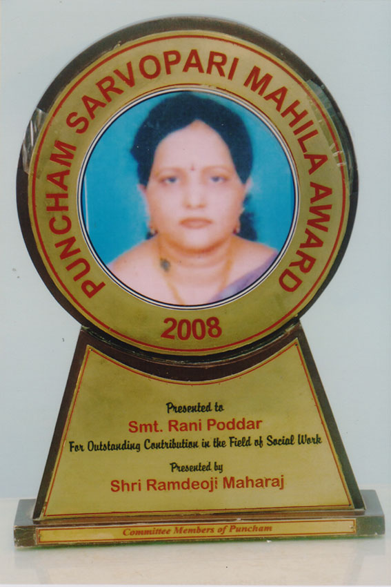 - Was awarded the World of Great Faces at the hand of Shri. Kripashankar Singh given to her for her outstanding and continuous contribution in the field of social work